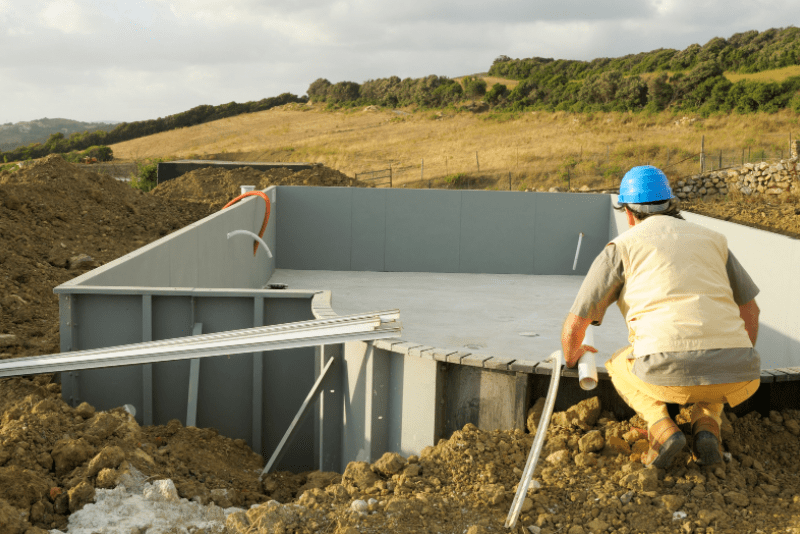 Na začetku je potrebno poudariti, da je gradnja bazena predvsem odvisna od posameznega bazenskega tipa, ki ga želite imeti. Pri zidanih tipih je za temelj najustreznejša armiranobetonska plošča, na katero se postavijo betonski kvadri, ki služijo kot stene bodoče končne strukture. Stene so lahko iz betona, lahko pa se uporabijo votli zidaki stiropool, ki jih kasneje napolnijo z betonom.